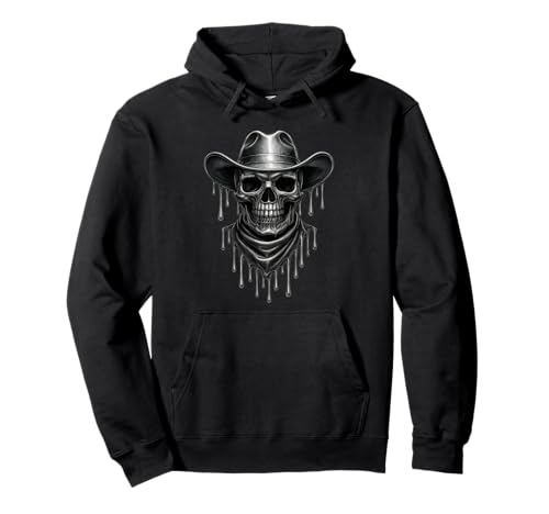 Melting Skeleton Cowboy Skull Dripping Goth Western Gothic Pullover Hoodie