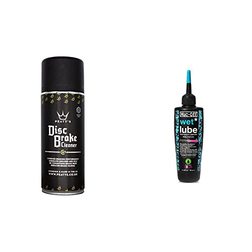 Peaty's Disc Brake Cleaner - Improves Bicycle Braking Performance, 400ml & Muc-Off 967US Wet Chain Lube, 120 Millilitres - Biodegradable Bike Chain Lubricant, Suitable For All Types Of Bike