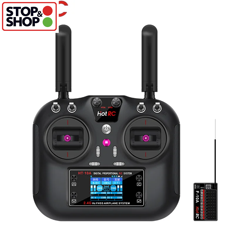 HotRC HT-10A 2.4GHz 10CH Transmitter w/ F10A Receiver for RC Drone Boat Car UK
