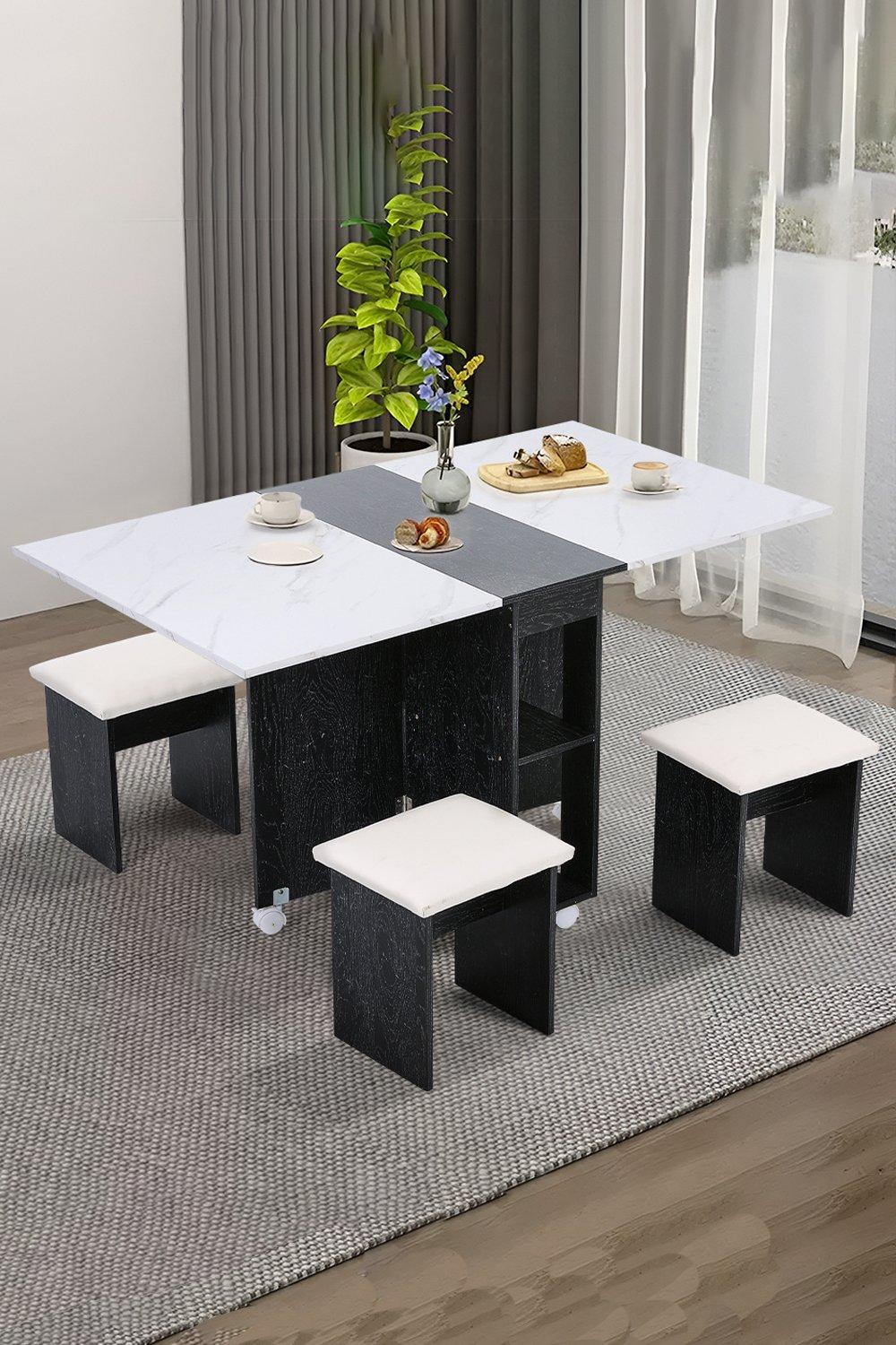 Versatile Expandable Dining Table Set, Drop-Leaf Table with Storage Shelves and Wheels