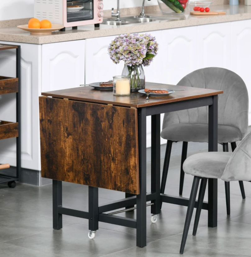 Industrial Drop Leaf Dining Table Folding Table with Wheels Metal Frame Kitchen