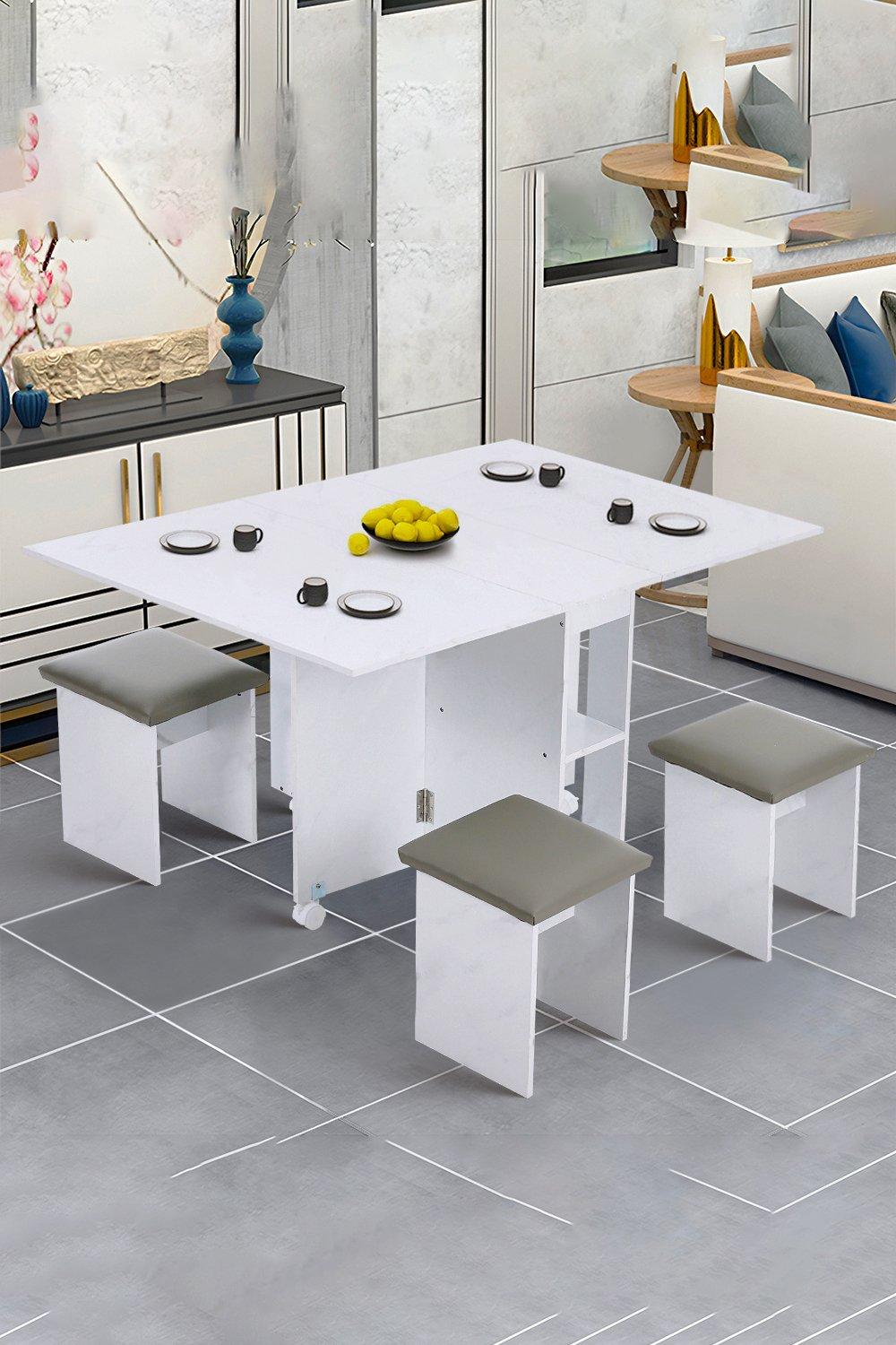 Foldable Drop Leaf Dining Table Wood Effect 4 Person Kitchen Table Compact White