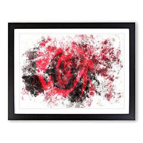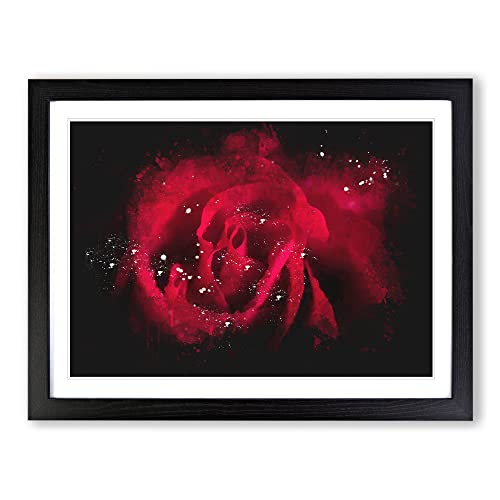 Drops Upon A Red Rose Paint Splash Modern Art Framed Wall Art Print, Ready to Hang Picture for Living Room Bedroom Home Office Décor, Black A2 (64 x 46 cm)