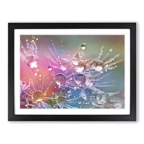 Flower Drops of Water on Dandelion Seeds Modern Framed Wall Art Print, Ready to Hang Picture for Living Room Bedroom Home Office Décor, Black A4 (34 x 25 cm)