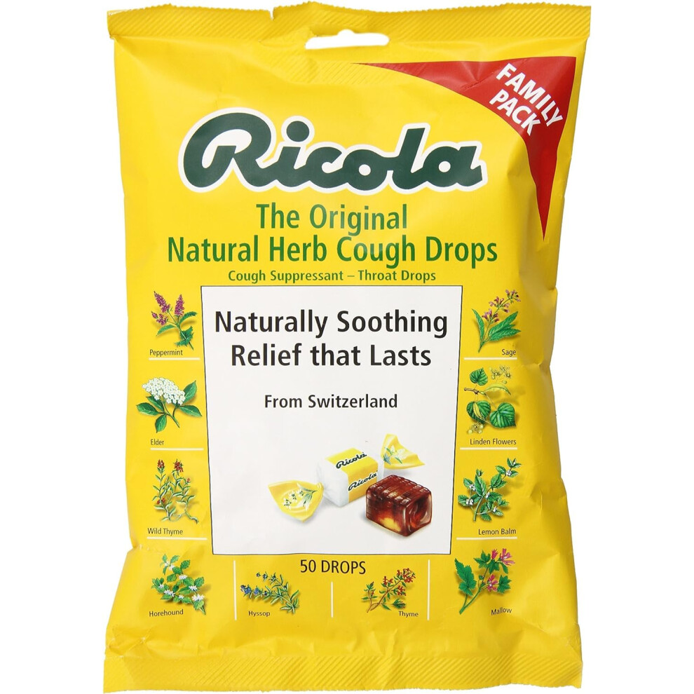 Ricola Big Bag Original Natural Herb Cough Drops 50-Count Bags (Pack of 12)