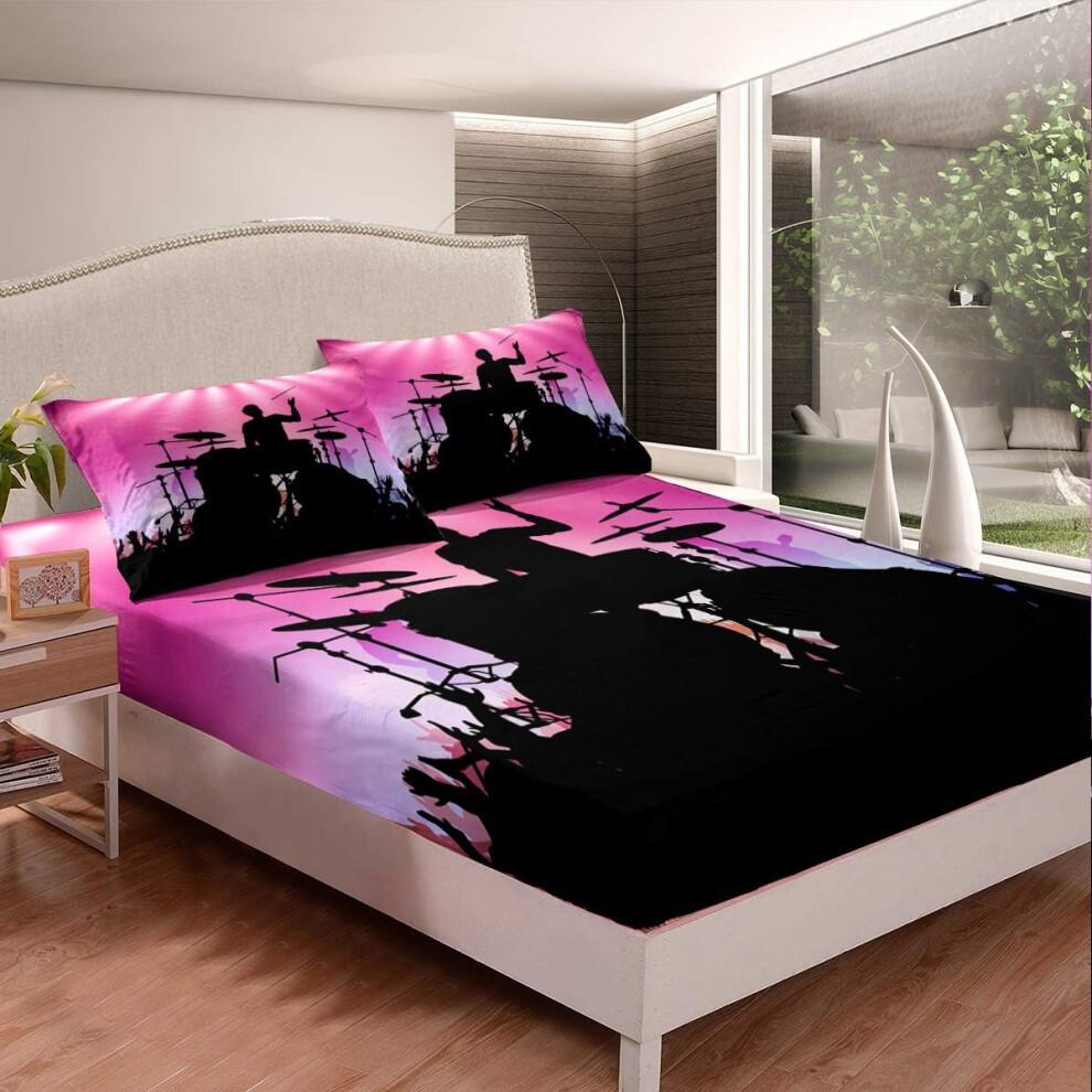 (Multi 05, King(59"x79")(No Comforter)) Drum Kit Hip Hop Hippie Fitted Bed Sheets Double Rock Music 3 Piece Bedding Decor Set Music Equipment Stylish