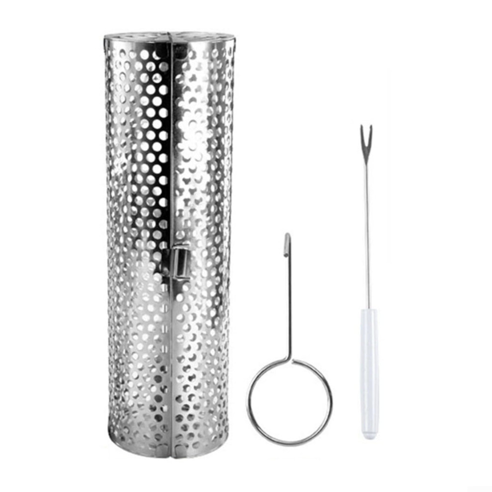 Stainless Steel Round BBQ Rotating Basket Set With Fork For Garden Picnic Grill Cage Drum Barbecue Equipment XL