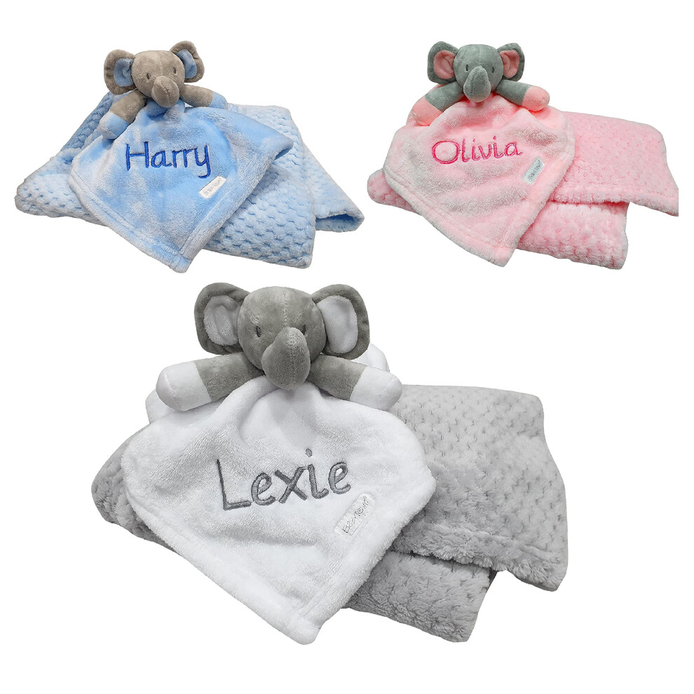 Personalised Baby Gift Sets Embroidered Elephant Comforter & Blanket Personalised Baby Boy/Girl Gift Set Baby Shower (Grey Comforter/Blanket)