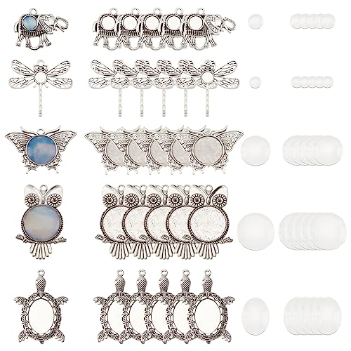 PH PandaHall 30 Sets 5 Styles Animal Photo Charms Blank Bezel Owl Charms Trays Turtle Cabochon Blanks Elephant Butterfly Dragonfly Pendant Trays for Graduation Gift Wedding DIY Craft Jewellery Making