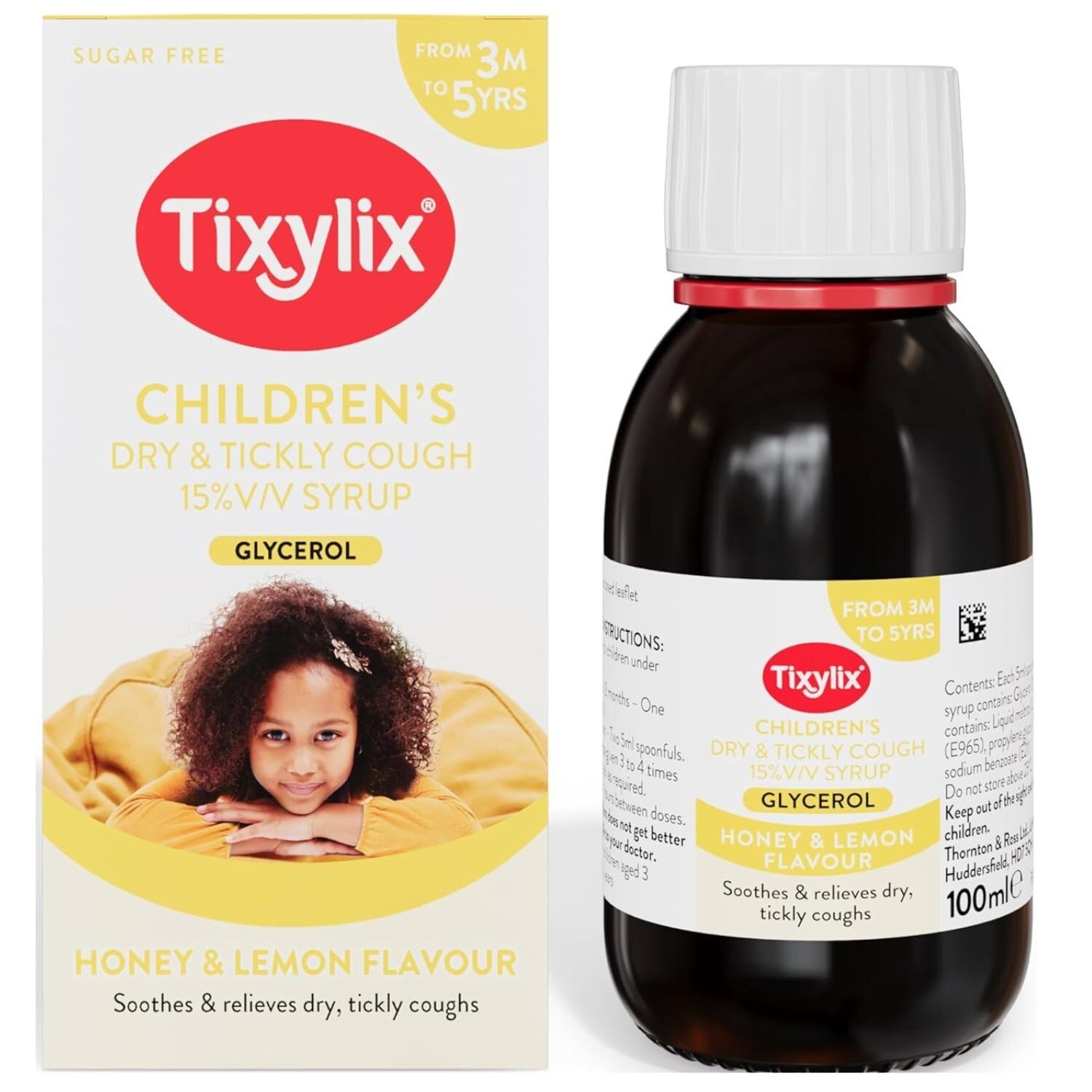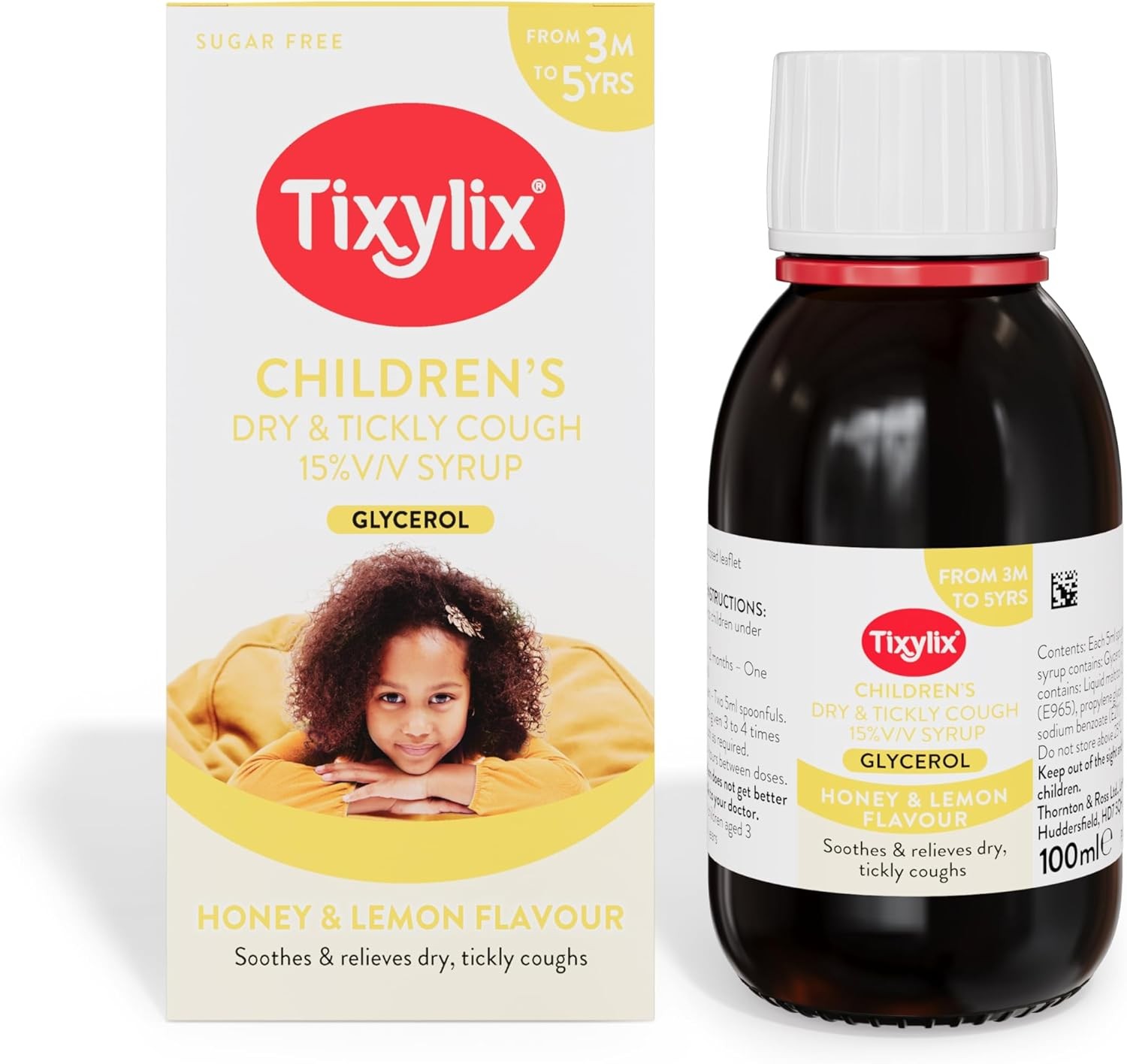 Tixylix Children's Honey and Lemon Dry & Tickly Cough Syrup 100ml, Sugar and colour free, Suitable for vegetarians, Suitable from 3 months to 5 years