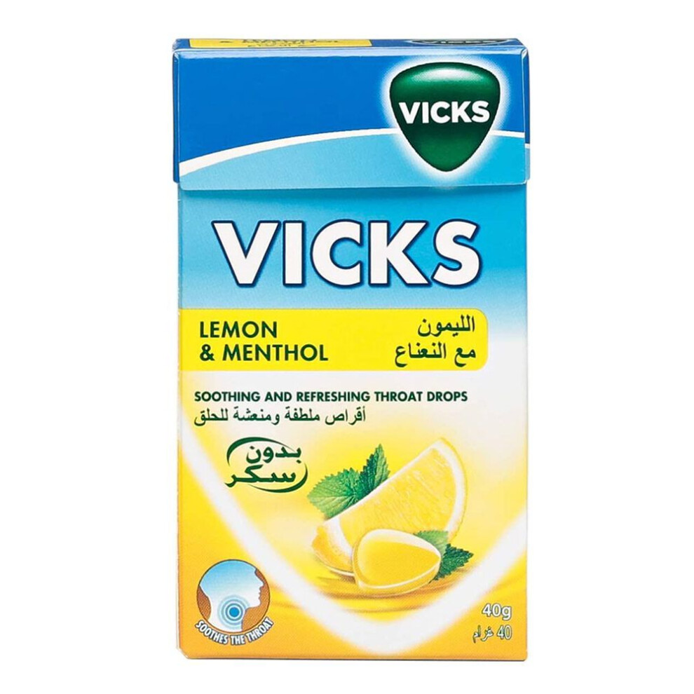 Vicks Soothing & Refreshing Throat Drops With Lemon & Menthol 40g|Relief from Sore Throat & Dry Cough