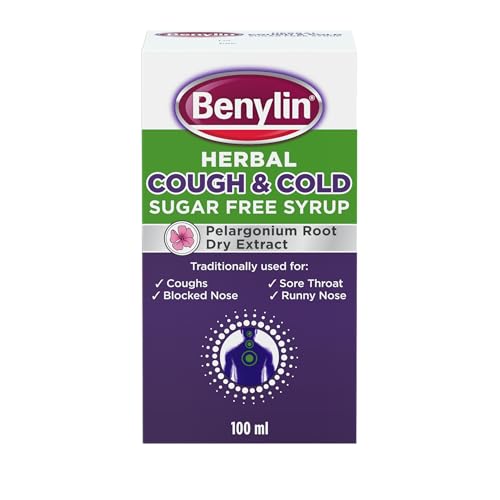 BENYLIN® Herbal Cough & Cold Sugar Free Syrup (1x 100ml), Traditional Herbal Medicine, with Pelargonium Root Dry Extract to Relieve Runny and Blocked Noses, Coughs and Sore Throats