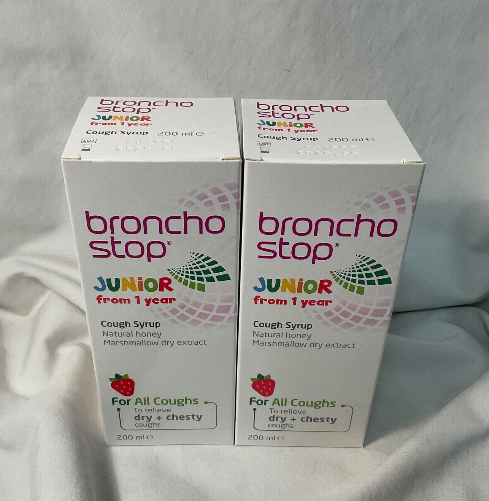 2 x BRONCHO STOP Junior From 1 Year Cough Syrup Relieve Dry + Chesty Cough 200ml