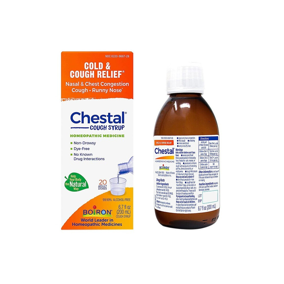 Boiron Chestal Cold and Cough Syrup 6.7 fl oz | Homeopathic Relief for Dry & Productive Cough, Sore Throat, and Nasal Congestion