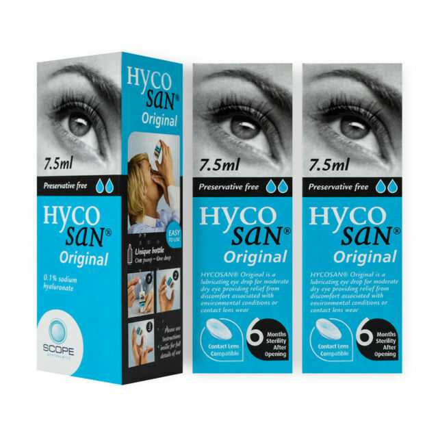 PACK OF 3 Hycosan Original Preservative Free Lubricating Dry Eye Drops 7.5ml
