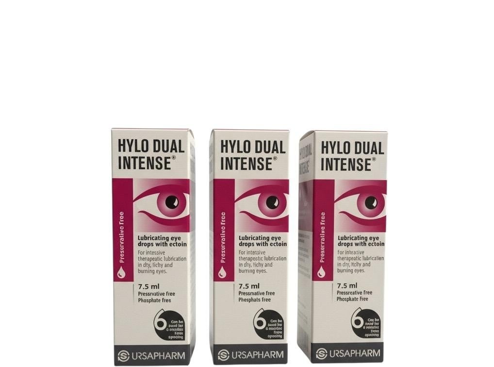 3x Hylo Dual Intense Lubricating Dry Itchy Eye Drops Preservative Free 7.5ml