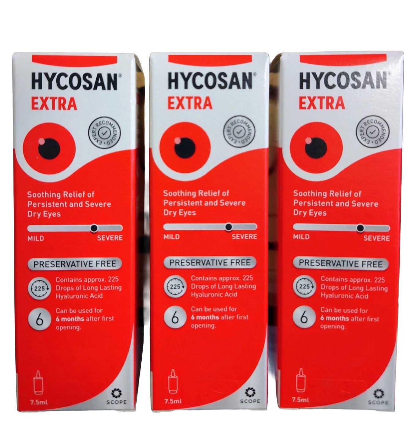 Hycosan Extra 3x pack Preservative Free DRY Eye Drops RECOMMENDED BY OPTICIANS