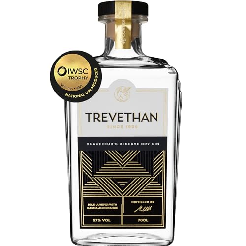 Trevethan Chauffeur's Reserve Handcrafted Cornish Gin with 10 Balanced Botanicals - Speciality Small Batch Navy Strength London Dry Gin - 57% ABV - 70cl