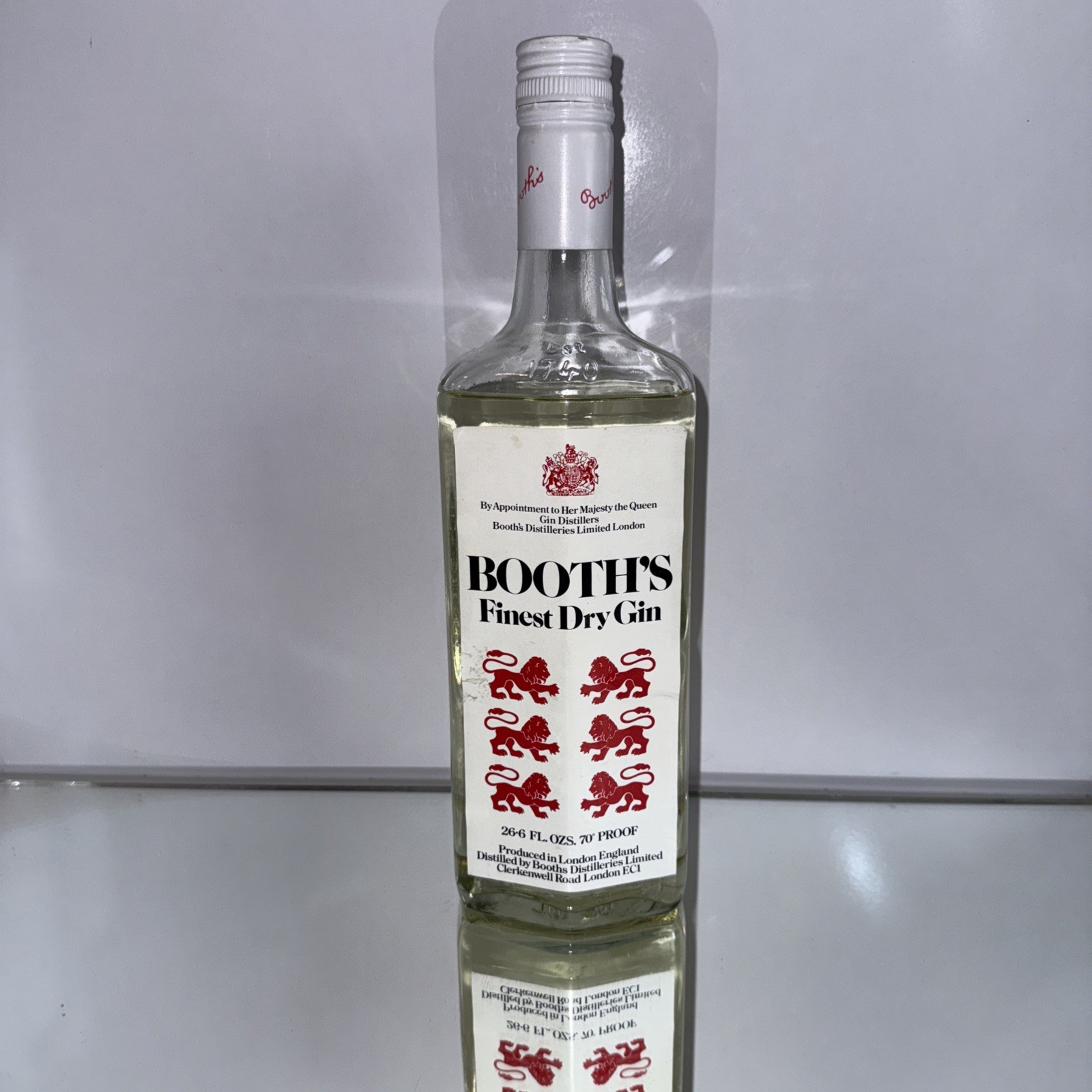 Booths Finest dry Gin (1970's bottling) 26 2/3 Fl Oz 70 % proof