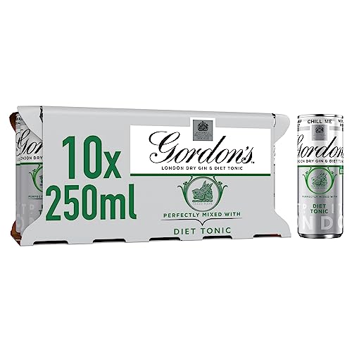 Gordon's London Dry Gin & Diet Tonic | 5% vol | 10 x 250ml Can | Ready to Drink Gin & Tonic Cans | Juniper & Gin Botanicals | Best Served Chilled from the Can or in a Gin Glass