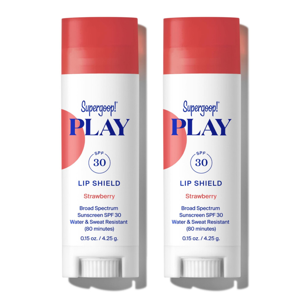 Supergoop! PLAY Lip Shield SPF 30 with Strawberry - Pack of 2 - Moisturizing Lip Treatment for Dry Cracked Lips - Clean Ingredients & Broad Spectrum U