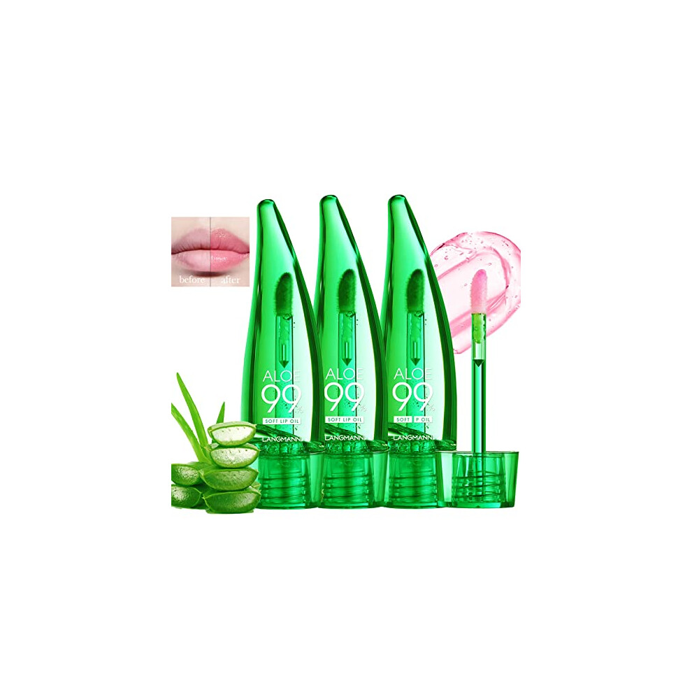 3PCS Aloe Vera Lip Gloss, Long Lasting Nutritious Lip Balm Moisturizing Aloe Vera Lip Oil for Lip Treatment and Dry Lips, Color Changing Lipstick