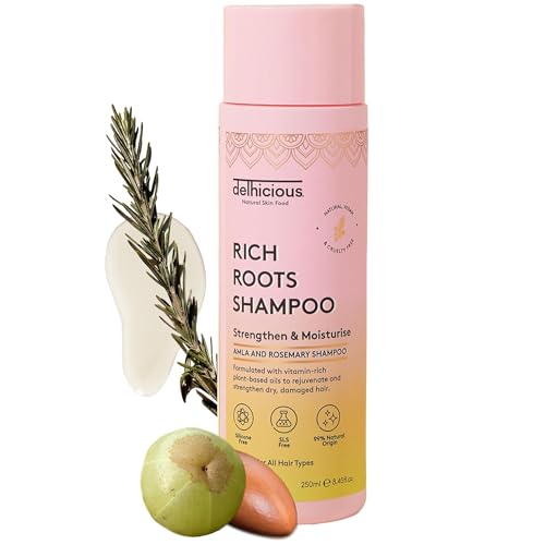 Delhicious Amla Oil & Rosemary Oil Shampoo for Hair Growth - Rich Roots Vegan Shampoo for Thinning Hair, Damaged Hair - Dry Scalp Treatment with Argan Oil - Natural, Ayurveda Hair Treatment - 250ml