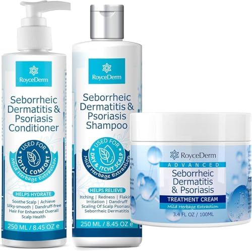 Roycederm Seborrheic Dermatitis & Psoriasis Shampoo and Conditioner Set - Effective Scalp Treatment for Folliculitis, Psoriasis, Dandruff, Dry Itchy Scalp - Soothing, Moisturizing Herbal Formula