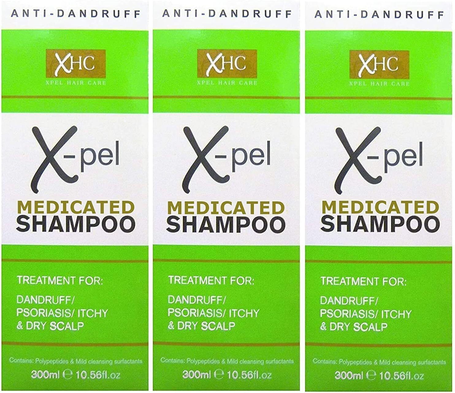 Xpel Medicated Shampoo Treatment for Dandruff Psoriasis Dry Itchy Scalp (3 X 300