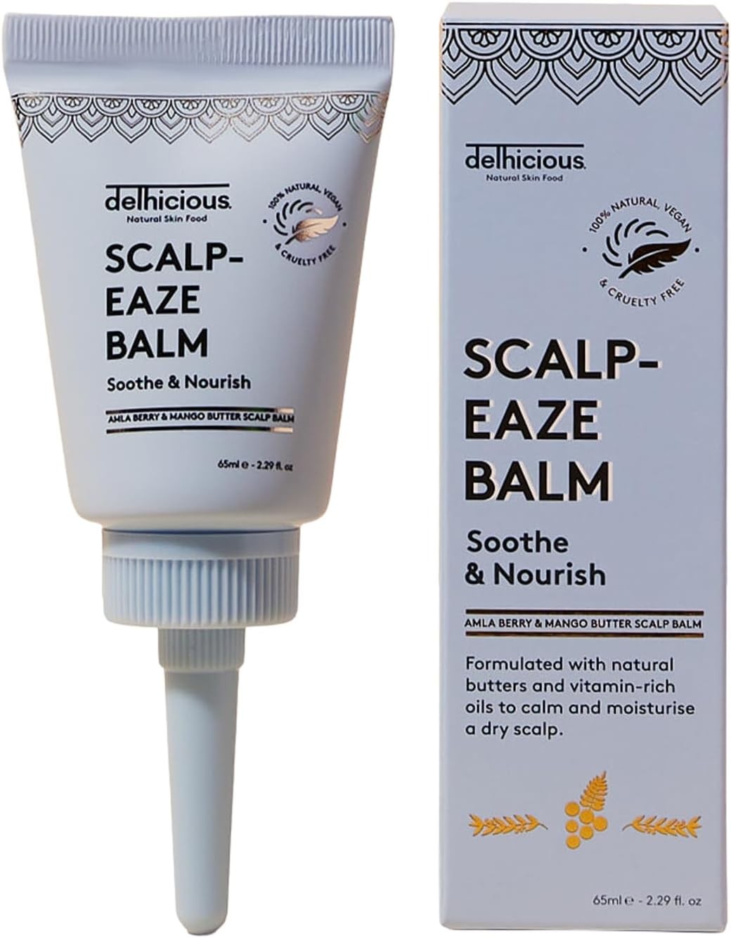 Delhicious Dry Itchy Scalp Treatment Moisturiser Balm - Amla Hair Oil, Shea Butter & Mango Butter - Scalp-Eaze - Psoriasis Scalp Treatment, Dry Scalp Serum - SLS Free, Natural, Vegan, Ayurveda - 65ml