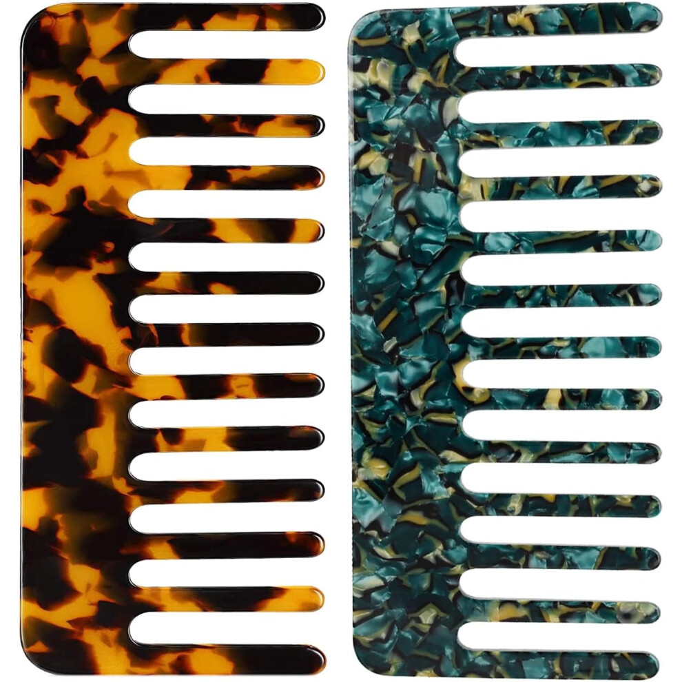 2 Pcs Wide Tooth Comb Hair Detangling Comb Styling Shampoo Comb for Curly Hair Wet Dry Hair Styling, Dark Blue