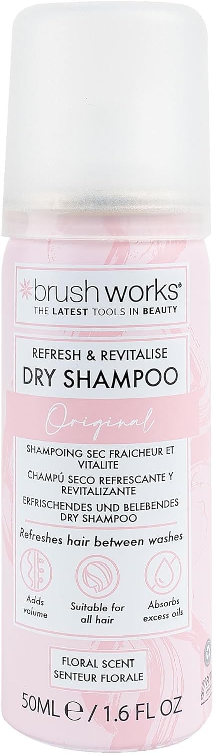 Brushworks Refresh & Revitalise Floral Dry Shampoo 50ml - Travel Size, No Rinse