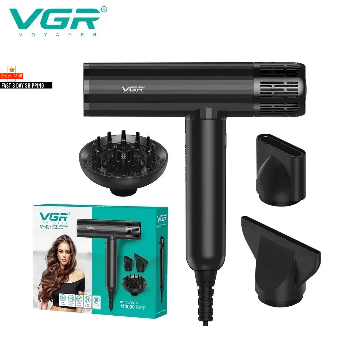 VGR Leafless Hair Dryer Professional Negative Ion Blower Dryer Brushless Motor 1