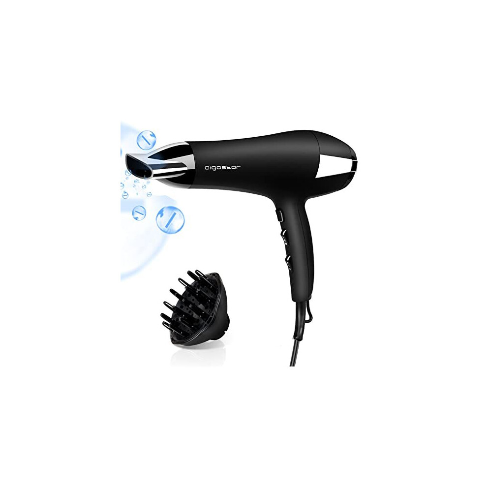 Aigostar 2400W Powerful Ionic Hair Dryer, Professional Negative Ions Hairdryer with Diffuser and Nozzle, 3 Heating, 2 Speeds and Cool Shot Button