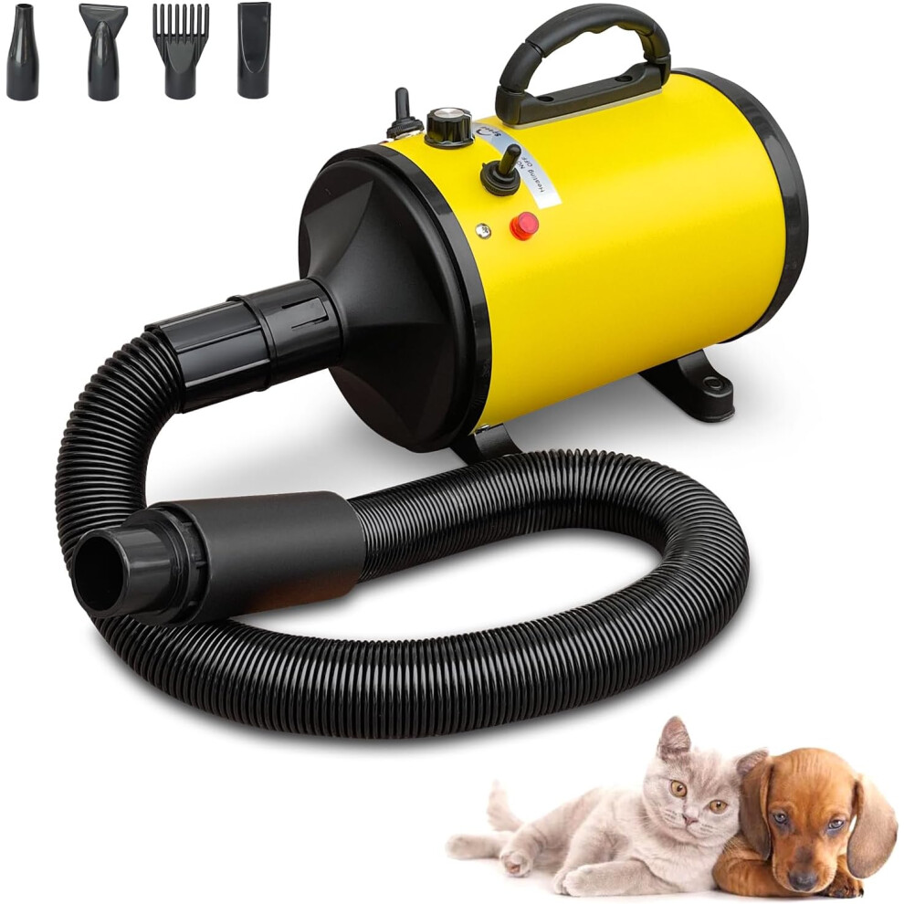 (Yellow) Dog Hair Dryer, Pet Hair Dryer Professional Pet Grooming Dryer Dog Blow Dryer, Adjustable Temperature, with 4 Different Nozzles