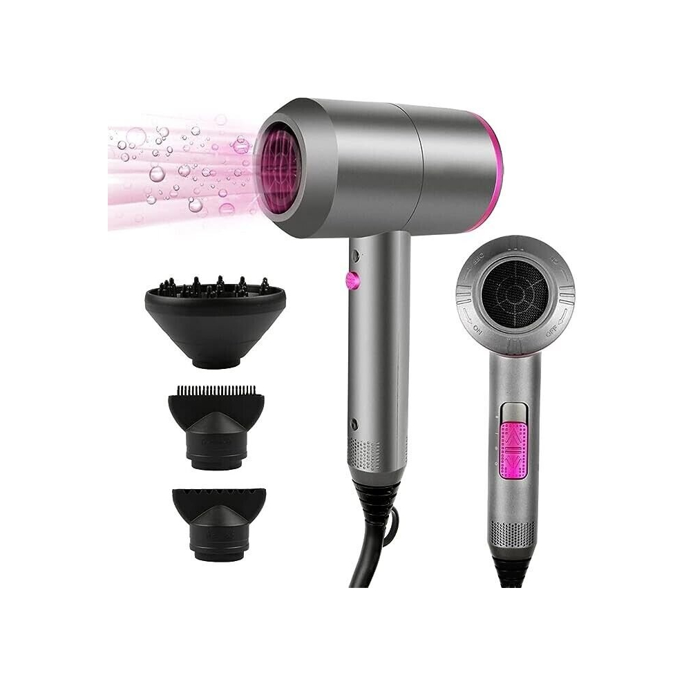 (Gray) Negative Ionic Hair Dryer Professional Blow Dryer Lightweight Quick Drying with 3 Diffusers