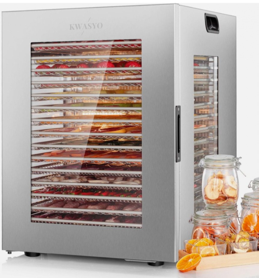 Kwasyo 8 Tray Stainless Steel Food Dehydrator, Dryer uk with 30-90°C Adjustable Thermostat & 24hr Digital Timer, Commercial Drying Fruits Machine for Fish Vegetables Meat Jerky Herb