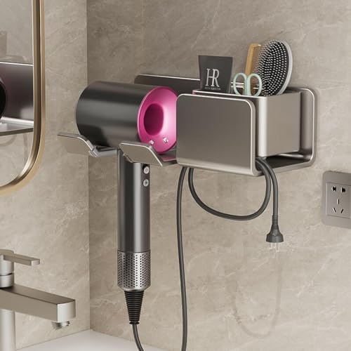 XJBTBA Hair Dryer Storage Rack Leifen Non-Punched Toilet Storage Hair Dryer Hanger Hair Dryer Bracket Bathroom Shelf Gun ash - Hair Dryer Rack (with Storage Rack