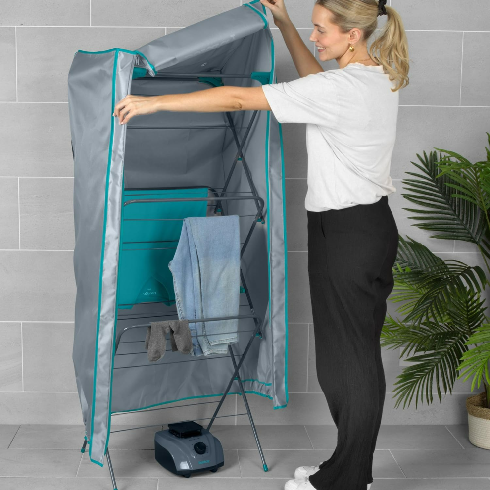 DrySoon Heated Clothes Airer Drying Pod â Holds Up To 12 Hangers Circulates Hot