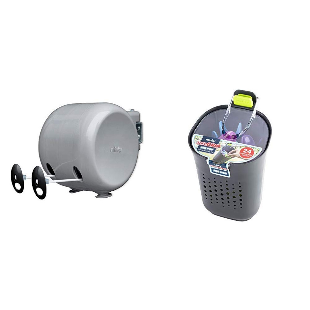 Minky Retractable Reel Washing Line with 30m of Drying Space, Gray, 30 m with Pod Plus 24 Sure Grip Pegs, Grey, One Size