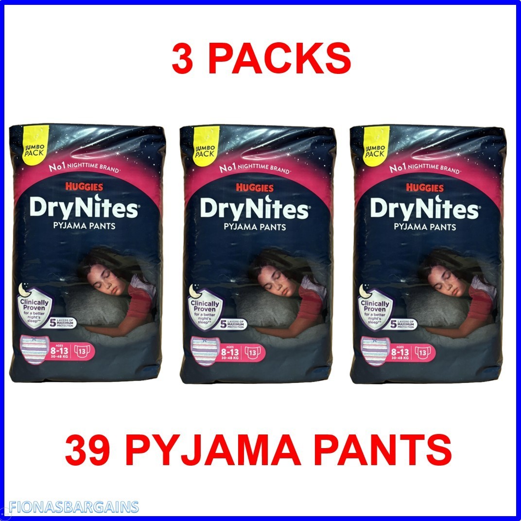 Huggies DryNites for Girls 3 Packs x 13 = 39 Pyjama Pants Ages 8 - 13 Years