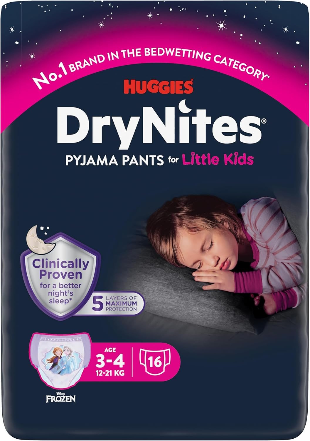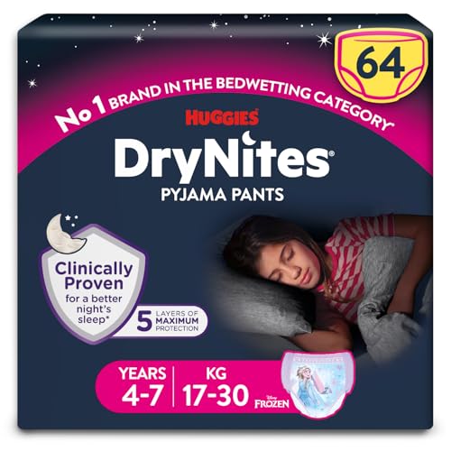 Huggies DryNites, Pyjama Pants for Girls - Sizes 4-7 Years (30 Pants) Maximum Protection to Manage Night Time Bed Wetting Discrete with Exciting