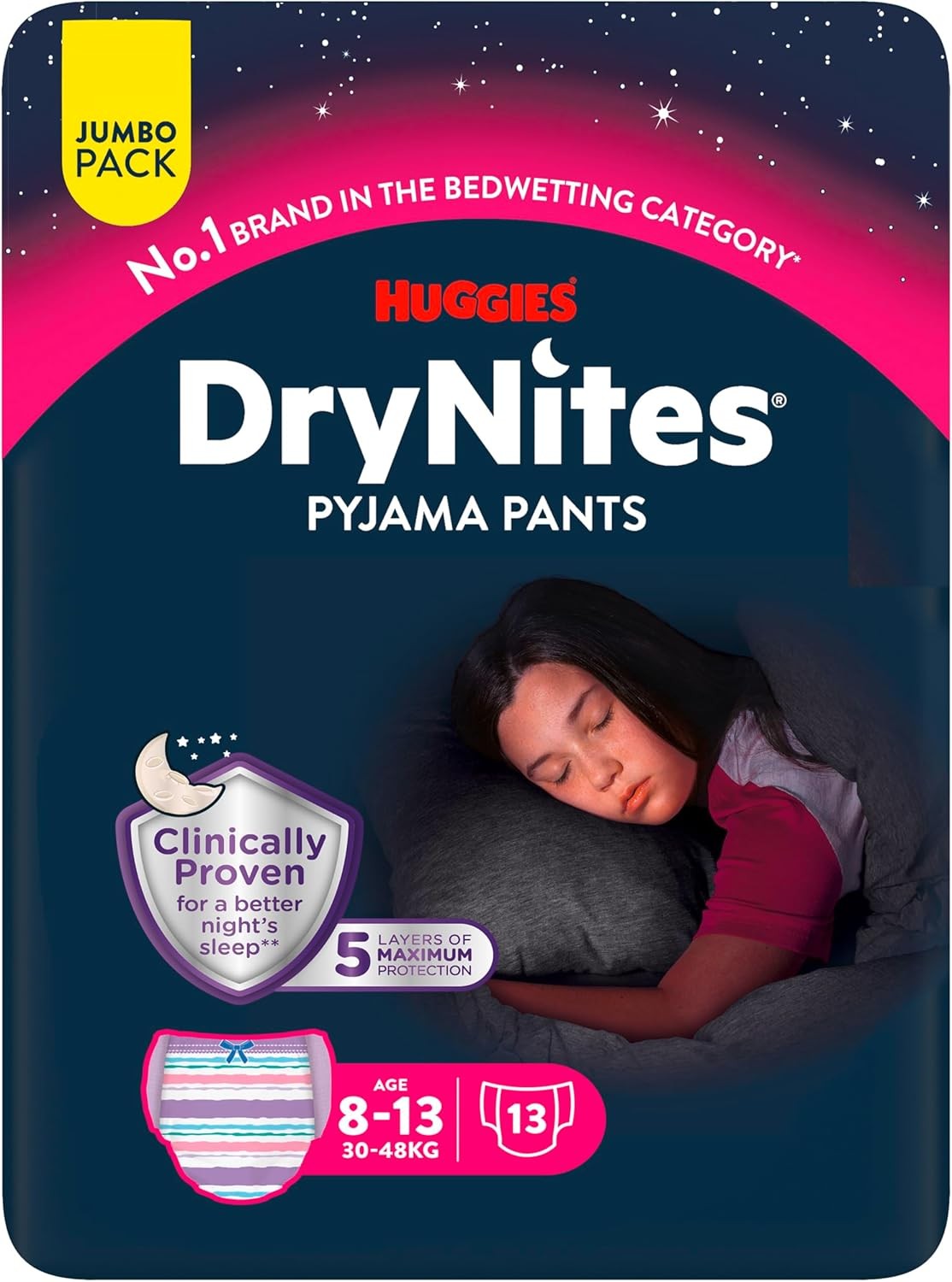 HUGGIES DryNites, Pyjama Pants, Girls 8-13 Years 8-13yrs (52 Pants)