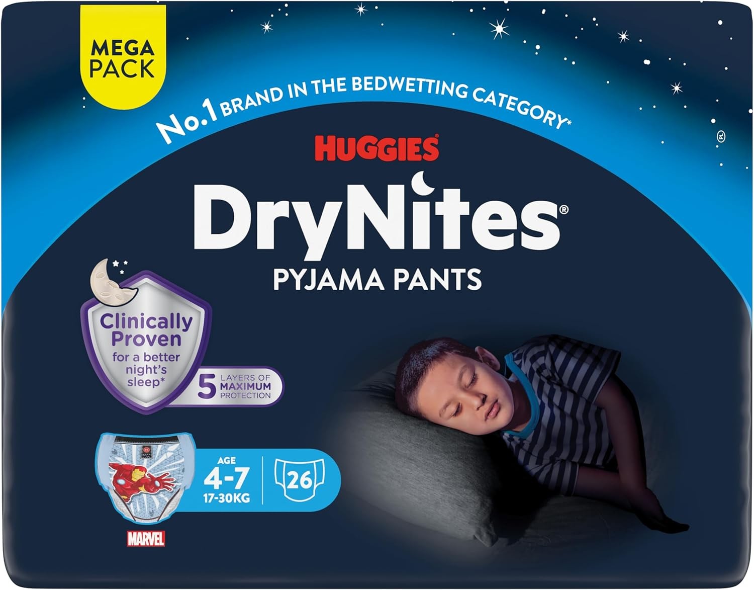 HUGGIES DryNites® Pyjama Pants, Boys 4-7 Years (17-30KG), 26 x Bedwetting...