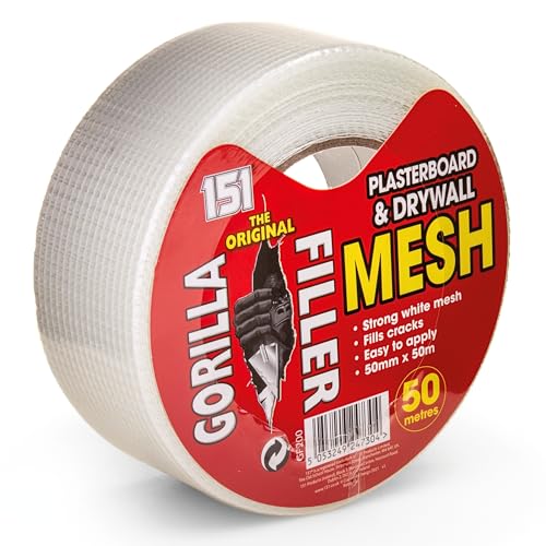 Gorilla Filler Plasterboard & Drywall Mesh Tape | Fills Cracks - Easy to Apply (Self Adhesive) | 50mm x 50m (White, 50m)