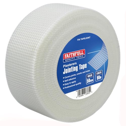 Faithfull FAITAPEJOINT Plasterers Jointing Tape, Drywall Adhesive Mesh for Plastering & Patching Tasks – White 50mm x 90M