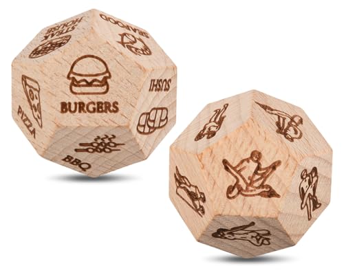 ds. distinctive style 2 Pieces Date Night Dice Set, 1 Couple & 1 Food Decision Dice for Couples, Perfect for Date Nights, Anniversaries, Couple Gifts - Wooden