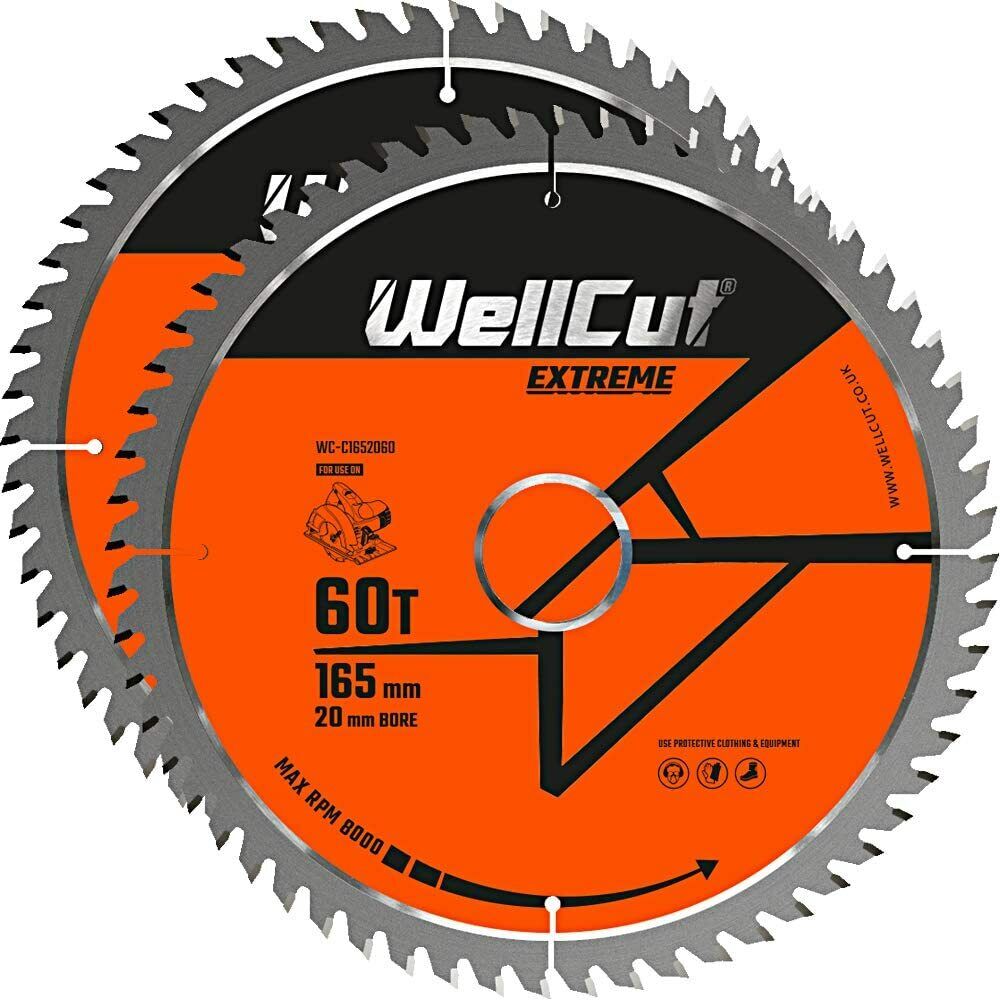WellCut TCT Saw Blade 165mm x 60T x 20mm Bore for DSS610, M18CS55 Pack of 2