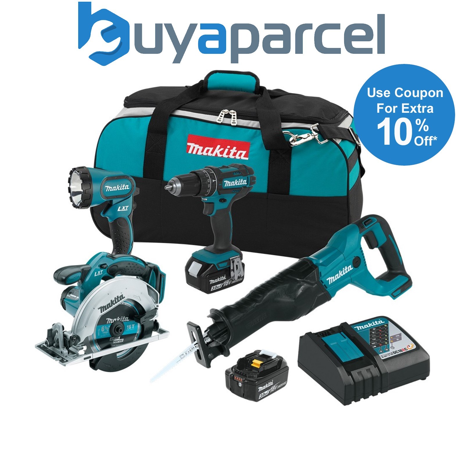 Makita LXT 18v 4 Piece Kit - Drill Circular Saw Reciprocating Saw Torch 2 x 3ah