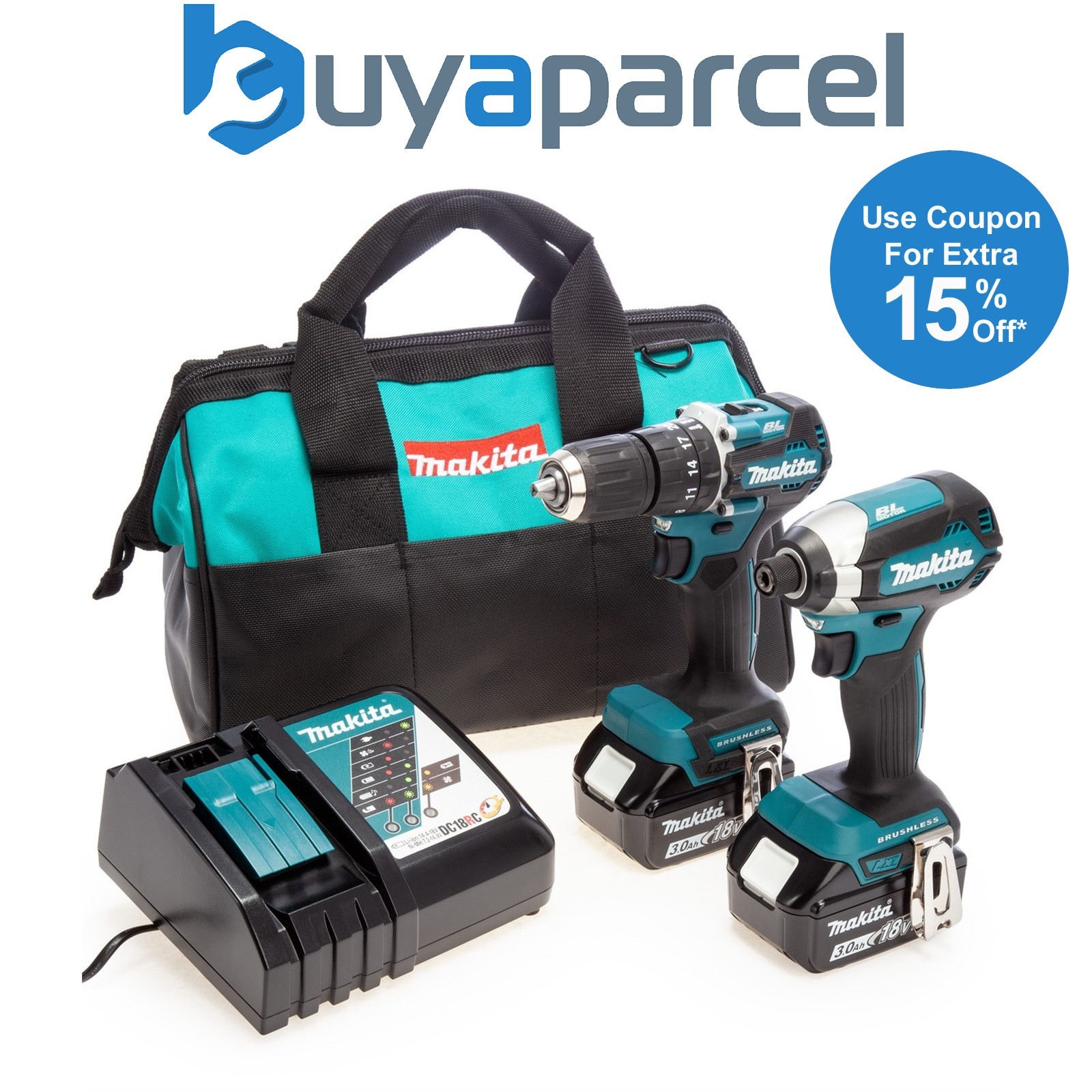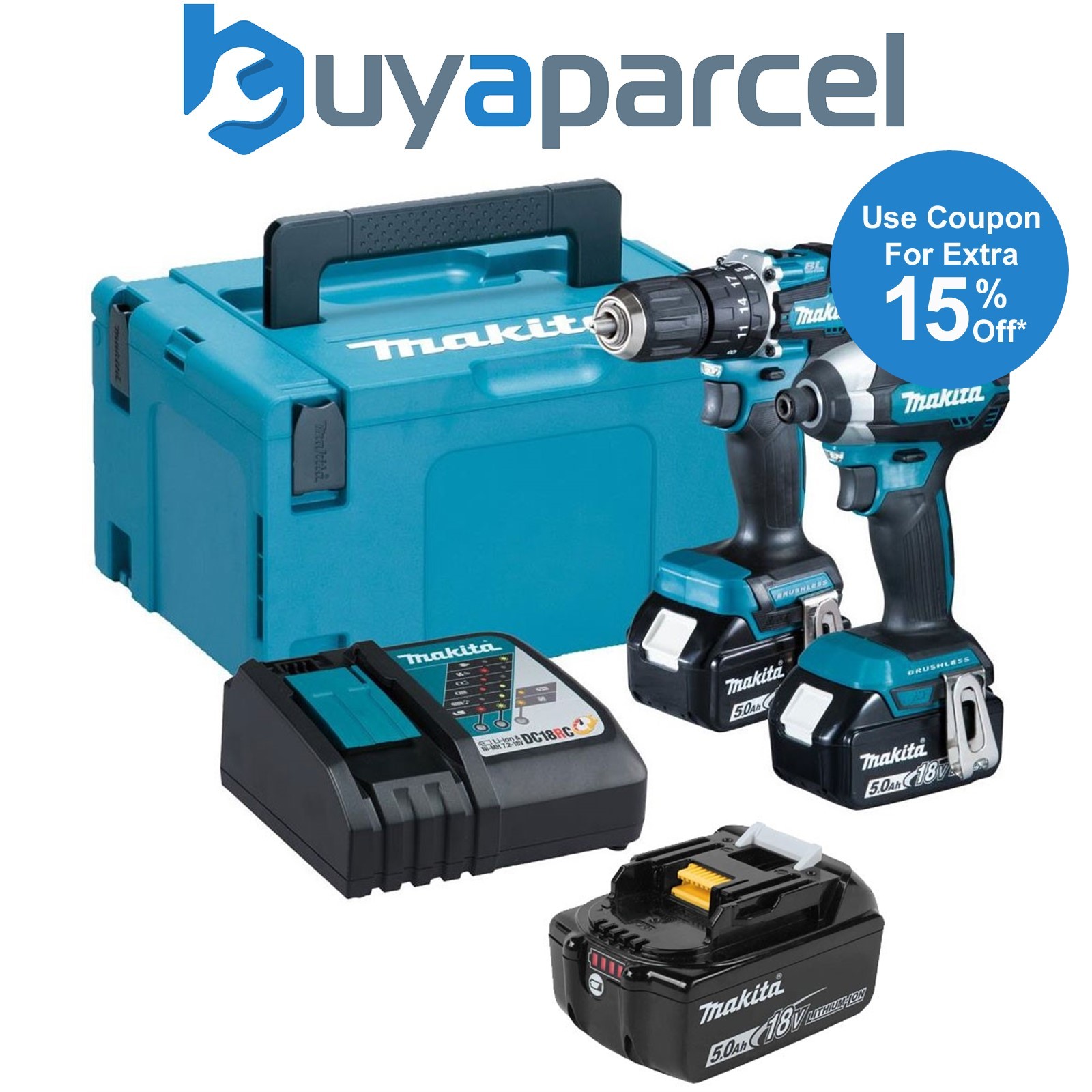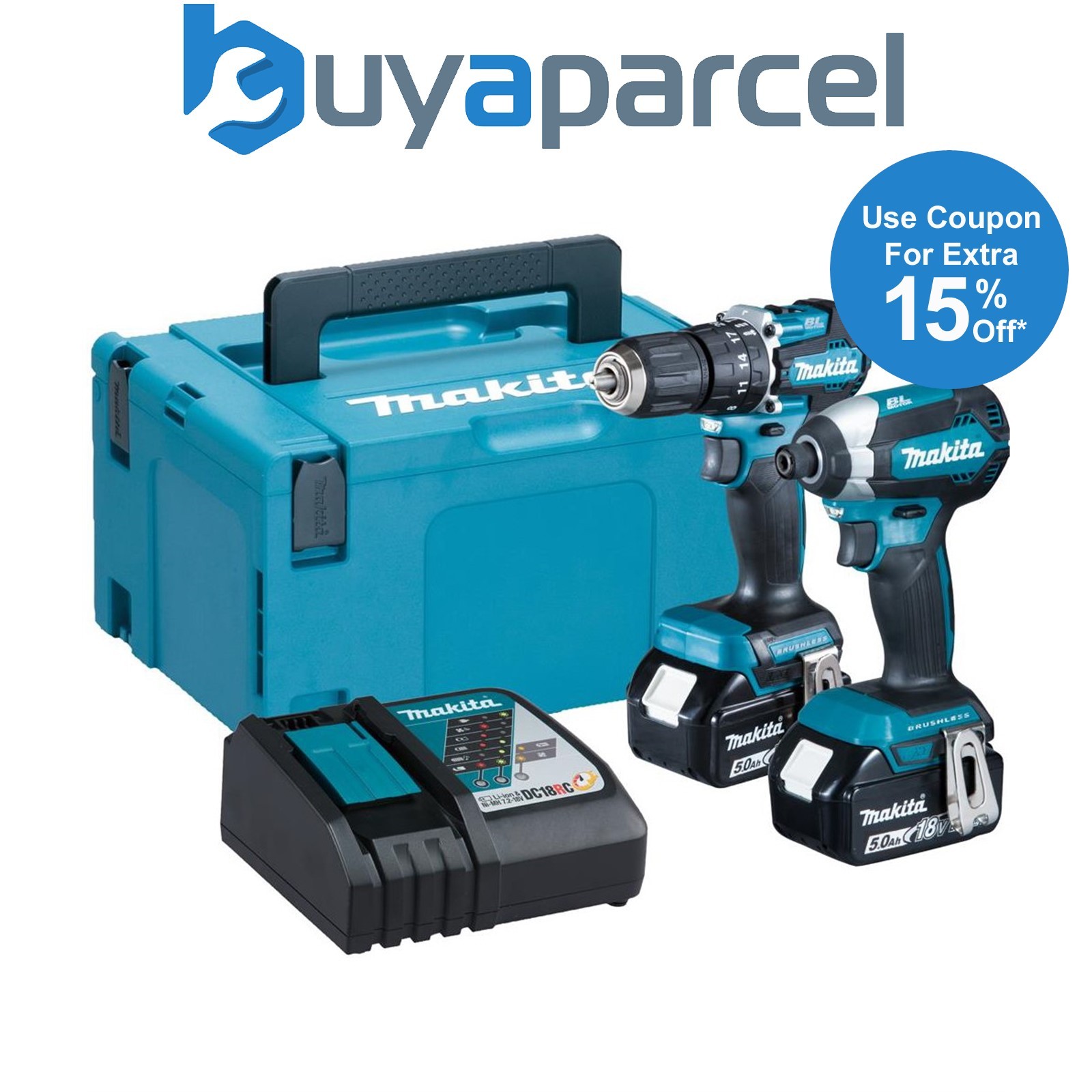 Makita 18V Brushless Impact Driver & Combi Drill 2 x 5.0Ah Battery & Charger